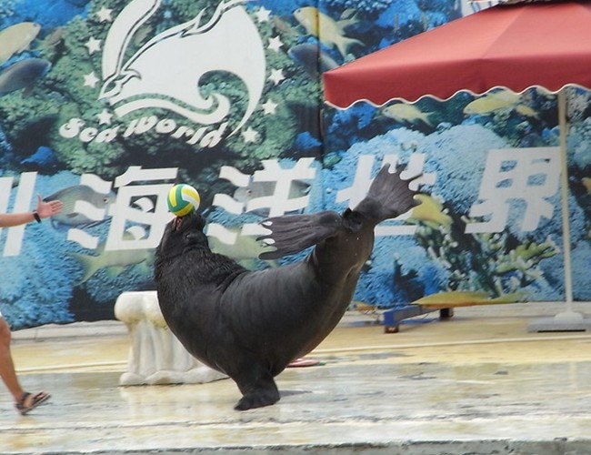 海洋劇場:設(shè)有近3000個座位,現(xiàn)有6只海豚、8只海獅、6只海豹。每天三輪、近1個小時的海洋劇場大表演,俄羅斯勇士帶來極限高空跳水特技,烏克蘭美少女演繹激情水上芭蕾,國際小丑帶來爆笑嬉水節(jié)目,還有海洋動物明星海豚、海獅、海豹的精彩表演,場場表演贏得觀眾近100次歡呼喝彩和興奮的掌聲!