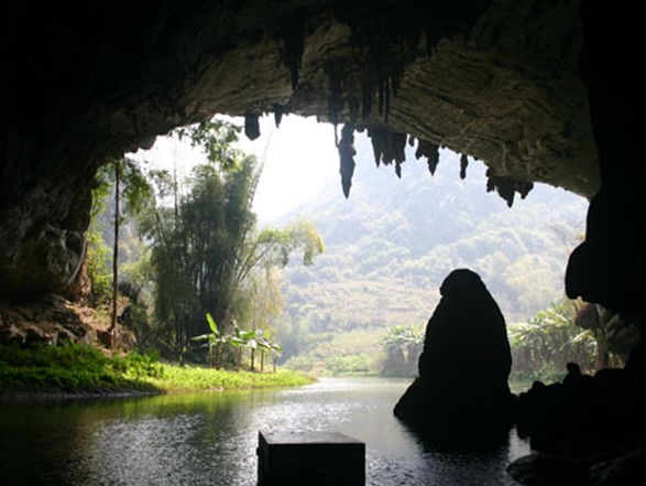 陽春玉溪三洞原名三洞天,古名甘婪水,離凌霄巖約2公里,由漠陽江上游——甘婪水穿破三個大石山溶洞而成,總長3公里。洞內泛舟,清泉叮咚,溪水清瑩如玉,故又名玉溪三洞。玉溪三洞內石鐘乳琳瑯滿目。
