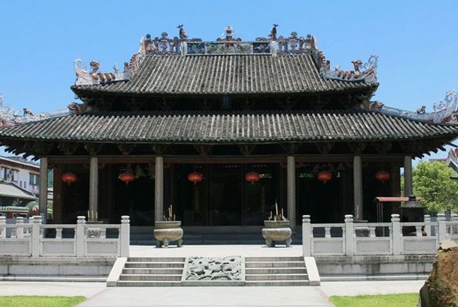 大成殿面闊5間17.36米。進深5間17.53米,建筑面積304平方米。平面幾乎是正方形,為宋元古制。殿中減柱4根,只余正中4根木質大金柱。殿前為閥3.22米、深8.7米的月臺,圍以磚砌欄桿,月臺前正中及左右各設踏道,月臺前設一磚石砌拜壇,闊6.15米、深4.73米。大成殿高19.4米,重檐歇山灰瓦頂。坡度平緩。出檐深遠。斗?疏朗。山面有山花板,各施懸魚一條。大成殿斗種類復雜,計有11種之多。下檐斗?梁架保持了宋代風格,柱頭和補間鋪作均為七鋪作單抄三下昂,兩根直昂昂尾均長二橡,甚為罕見,其出跳總長居全國現存唐宋同類斗(七鋪作)之首位。上檐前后檐斗,是元代遺構,其采用象鼻子昂的形制,為較早形態,其后流行于清代。大成殿殿身梁架采用大了袱結構法,省去4根重檐金柱和2根八椽,使殿內空間完整開闊,為華南建筑孤例。大成殿的裝修裝飾有濃厚的嶺南地方特色。殿門上部扇用宮式萬字花紋,版權所有山東聊城聊之旅國際旅行社有限公司,轉載必究!殿內重檐后金柱間的由額和順身串間置一花罩,花紋別致。大成殿上檐正脊中央為蓮花寶杯及光環,下墊以夔紋飾塊,正脊兩端為夔脊飾,靠內側兩邊各置一魚龍。戧脊為游龍卷草,龍身繞脊出沒,形體生動。下檐角脊上端為魚龍吻,下端為卷草,稍靠上為一虎。正脊和垂脊兩邊滿繪有“三獅會燕”、“金玉滿堂”以及松鶴等彩畫?;彝唔斘萆祥苓呌眉t色陶質勾頭滴水鑲邊,下檐用藍綠色琉璃勾頭滴水鑲邊。