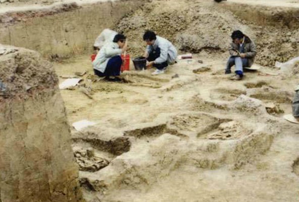 龍一村貝丘遺址在鼎湖區(qū)龍一村,離鼎湖山景區(qū)2.5公里,于1984年被發(fā)現,遺址年代距今約5000年左右,有新石器時代墓葬27處,出土的器物有石鑄、陶器和骨器。陶器造形簡單,有夾沙和泥質二種,有些泥質陶片先施白色陶衣,再給上儲紅色勾連紋圖案,并配有接孔和曲線刻劃紋;骨器中的骨笛是廣東省新石器時代遺址中的首次發(fā)現。墓葬都是豎穴土坑墓,葬式以側身屈肢葬為主,還有雙手反捆俯身屈肢葬和蹲踞葬。