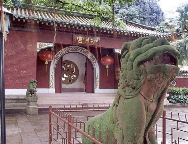 水月宮,位于肇慶市星湖中心區(qū)石室?guī)r南麓,北靠崧臺,面臨紅蓮湖,曾因立有高6米、重7噸的銅鑄佛像摩利支天而聞名省港澳和東南亞各國。 水月宮原為觀音堂,建于明嘉靖年間(1522-1566年),但“頻年為風(fēng)雨所折”,后得官民“樂于趨事”,遂于明萬歷二年(1574年)冬“辟廣升高,壯址展基”。 據(jù)傳,觀音能顯現(xiàn)32種不同的應(yīng)化色相,其中以“水月”色相最為高潔,因名“水月宮”。宮殿建成后再為風(fēng)雨所折。明崇禎九年(1636年),兩廣總督熊文燦傾貲十余萬重建。1943年,水月宮遭日寇空襲炸毀。1957年,水月宮按原樣再行重建。 水月宮占地面積6000平方米,建筑面積2500平方米,為鋼筋混凝土仿古殿式結(jié)構(gòu),由大殿、東廂、西廂、后殿4部分組成:大殿,飛檐斗拱、彩釉生輝、華麗堂皇;東西兩廂,精美質(zhì)樸、寬敞明亮,建有回廊相連;后殿,一座兩層高的樓閣,依巖建在高臺上,尤顯其巍峨雄壯。 水月宮大殿昔有摩利支天菩薩(身高6米)偕二天女(身高5米),金身巍然,赤足鼎立;摩利支天雙目稍向下凝望,版權(quán)所有山東聊城聊之旅國際旅行社有限公司,轉(zhuǎn)載必究!微笑、溫厚、慈祥,楣榜“苦海慈航”。佛像鑄于明崇禎九年(1636年),為表彰鄭芝龍得摩利支天庇佑戰(zhàn)勝劉香所鑄。可惜原鑄件已全部毀于“文化大革命”的烈焰之中。現(xiàn)在看到的摩利支天偕二天女是1986年鑄造的復(fù)制品。 水月宮有紅墻相圍。墻內(nèi)大殿前,設(shè)有庭院式花園,四時繁花似錦,爭艷斗麗;墻外大門前,種有百年古榕6棵,盤根錯節(jié),枝葉繁茂。