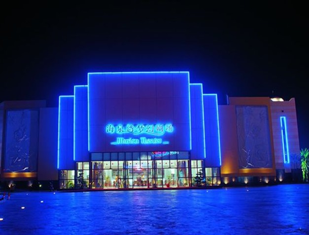 夢幻劇場坐落在海泉灣度假區大型主題活動和游客美食休閑娛樂的中心——漁人碼頭,是海泉灣投資1億多元人民幣精心打造的國內首屈一指的現代化、多功能室內劇場,能滿足大型歌舞晚會和慶典活動現場直播需求。總建筑面積8033平方米,劇場內凈空高14米,舞臺臺口高9米、寬16.6米、深17.5米,舞臺總面積787.5平方米,能容納1250多位觀眾,座椅分為貴賓席、嘉賓席和普通席,三分之一的座椅具有360度旋轉等特殊功能。