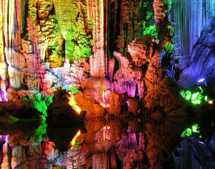 武隆是一個山清水秀的地方。其芙蓉洞也是國家5a級景區,在芙蓉江旁。是1993年發現,1994年對外開放的。它是世界上較大的溶洞群之一,洞內全長2700米,幾乎包括了鐘乳石所有沉積類型。洞內的“生命之源”“珊瑚瑤池”“巨幕飛爆”“石花之王”“犬牙晶花池”并稱為芙蓉洞“五絕”被世界洞穴專家譽為“斑斕輝煌的地下藝術宮殿”。特別是珊瑚瑤池系由水池中色澤淺黃的方解石晶花和浮筏石筍構成,池水面積約30平方米,水深0.5—1.3米,水質清沏透底,珊瑚瑤池以其面積最大的水下晶花為世所罕見,生長在晶花浮筏上的兩根翠玉般的石筍,尤如瑤池中的兩位妙齡仙女,更是洞中之珍品,舉世奇絕,而珊瑚池上的整個上部空間,更為琳瑯滿目的鵝管鐘乳石,石幔、石花和卷曲石等各類沉積物所布滿,顯得無比豪華富貴是洞號稱天下第一洞的標志性景區,據說此景全國獨一無二,世界上只有法國克拉姆斯洞穴才有,但它的水深和面積沒有芙蓉洞的大。真可謂“此景只應天上有,人間那得幾回". 芙蓉洞是一個大型石灰巖洞穴,形成于第四紀更新世(大約100多萬年前),發育在古老的寒武系白云質灰巖中。洞內深部穩定氣溫為16.1度。芙蓉洞主洞全長2500米,游覽道1860米,底寬12—15米以上,最寬69.5米;洞高一般8—25米,最高48.3米;洞底總面積37000平方米,其中輝煌大廳面積在1000平方米以上。整個芙蓉洞的最大靜態和客容量為185000人。 洞內各類次生化學沉積形態(Speleothems,即鐘乳石類,芙蓉洞中有碳酸鹽巖和硫酸鹽巖兩類化學類型)琳瑯滿目,豐富多彩,幾乎包括鐘乳石所有沉積類型,達70多種。如:石鐘乳、石筍、石柱、石幕(小的為石幔)、石瀑布、石旗、石帶、石盾、石葡萄、珊瑚晶花等。其礦物組成主要是方解石和石膏,也有文石、水菱鎂石。其中大多數種類存在數量之眾多,形態(有針狀、絲發狀、絲縷狀、發簪狀等)之完美,質地分布之廣泛,在國內目前的發現中,多屬絕無僅有,而某些類型,更為國內罕見,世界稀有。
