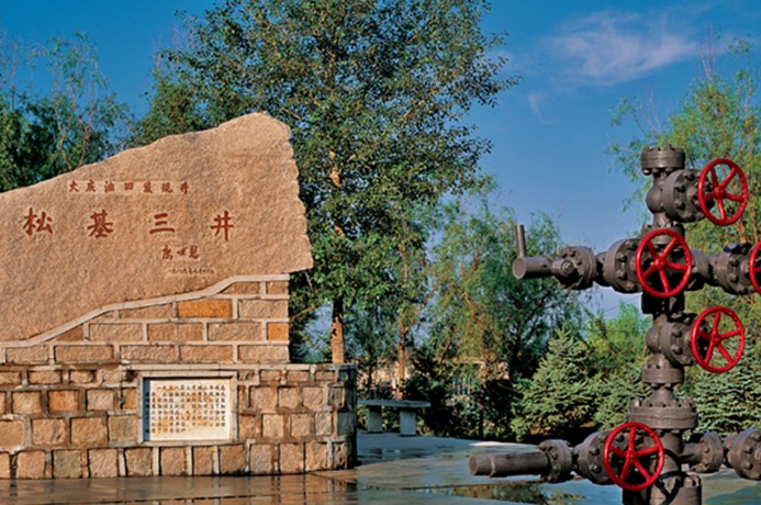 1958年9月,松遼石油勘探局最早提出在肇州縣“大同鎮電法隆起”上安置“松基三井”的井位。1959年9月26日下午4時,松基三井噴出了工業油流,從此中國石油工業歷史上掀開了新的一頁。現在的松基三井紀念碑位于第五采油廠,是為紀念大慶油田發現30周年,由中國石油天然氣總公司于1989年9月26日重新建成的。石油工業老領導、原中顧委常委康世恩同志題寫碑文:“大慶油田發現井——松基三井”。