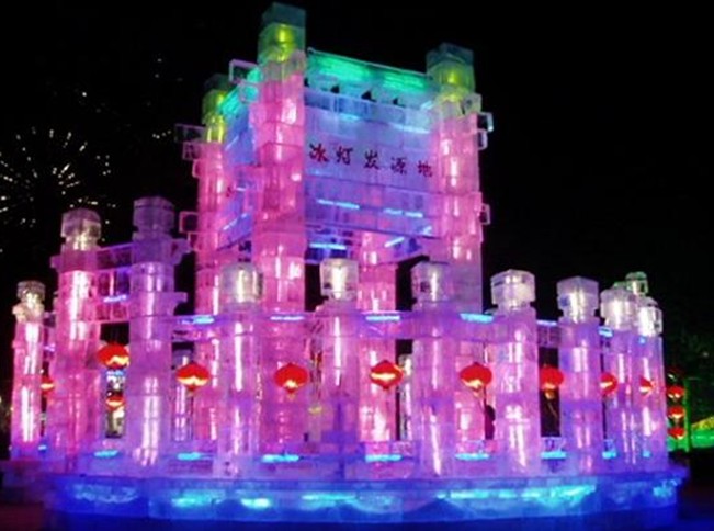 現代獨特的冰質造型藝術與冰景造園藝術,是冰城人開發利用冰雪資源最為突出的成就之一。它以松花江天然冰、自來水和各種電燈為材料,用砌筑、堆壘、雕刻、噴澆、冷凍和鑲嵌等方法,根據特定的主題需要和總體布局安排,在不同的園林空間加工出有關的冰景,冰建筑、冰雕塑、冰 瀑布、冰花壇、冰滑梯、冰書法、冰盆景、冰廣告、冰凍花、冰罩燈,組成若高低錯落、疏密有致的不同景區,形成步步有景、步移景易的冰雪園林,同時配置各種燈光,增加動的成份,輔以音響效果,達到形、光、動、聲的和諧統一。冰燈藝術是以冰為載體,以燈為靈魂,融繪畫、雕塑、建筑、園林、文學、音樂等多種藝術于一身,并可運用光學、力學、聲學及電氣、機械等科學技術的新興的造型藝術。運用這種藝術形式創造出的珠宮琳館、瓊榭瑤橋、銀雕玉塑、冰山雪嶺、冰凌冰瀑,白晝間千姿百態,晶瑩剔透,入夜后流光溢彩,萬紫千紅,象撲逆迷離的仙山瓊閣,似如夢如幻的水晶宮闕,且年年出新意,歲歲景不同,被稱為"永不重復的童話世界"。冰雕,即是冰燈中的一個品種,又是一種獨立的藝術形式。哈爾濱每屆冰雪節期間,都要分別組織職工、家庭、少年兒童和全國中學生以及國際性的冰雕比賽,比賽產生的數百件作品姿態各異,生動傳神,巧奪天工。
