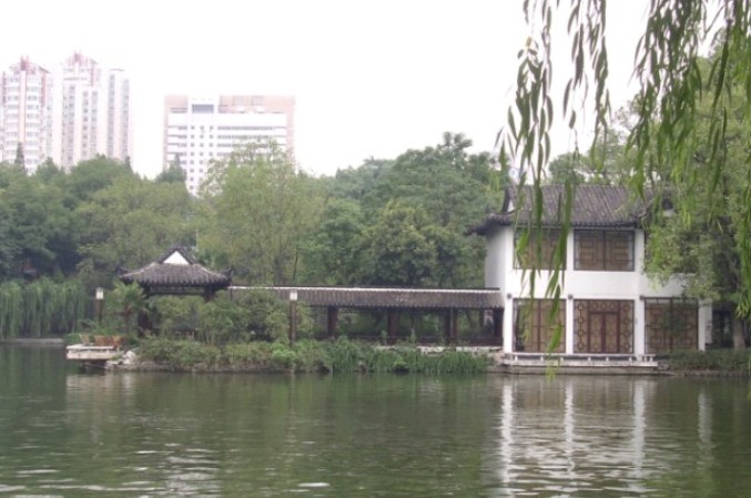西園境內溪流交織,地形地貌多變,主要是安靜休息區。這里綠蔭覆地,亭廊曲回,疏影橫斜,曲徑通幽,給人以步移景異,鬧中取靜之感。園內以植物造景為主,建筑和園林小品點綴,植物同山石、建筑、水體相互烘托、配合,形成了水榭、梅花山、牡丹園、藏幽園、張遼衣冠冢和陳列館等風光各異的景點。