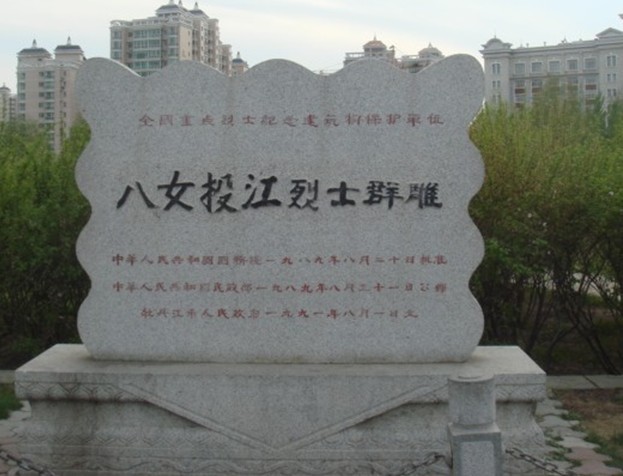 八女投江紀(jì)念地位于牡丹江畔的江濱公園。該群雕1988年落成,高13米,長(zhǎng)8.8米采用花崗巖石材雕鑿而成,"八女投江"四個(gè)大字由全國(guó)政協(xié)主席鄧穎超生前書(shū)寫(xiě)。站在這碩大的群雕前,無(wú)不使人思維翻滾,心潮澎湃,當(dāng)年八女視死如歸,英勇戰(zhàn)斗的情景又呈現(xiàn)在人們的面前,1938年10月下旬,東北抗聯(lián)四、五軍西征婦女團(tuán),在指導(dǎo)員冷云帶領(lǐng)下,擔(dān)負(fù)著掩護(hù)大部隊(duì)轉(zhuǎn)移的任務(wù),她們英勇抗擊日軍熊谷部隊(duì)的襲擊,在彈盡糧絕的情況下,寧死不屈,最后毅然背著負(fù)傷的戰(zhàn)友,投入林口縣境內(nèi)的兇猛暴烈冰冷刺骨的烏斯渾河,為國(guó)捐軀,譜寫(xiě)了一篇驚天地,泣鬼神的抗日史詩(shī)。電影《中華兒女》、《八女投江》都是根據(jù)她們的事跡拍攝的。1982年10月在林口烏斯渾河畔 建起了"八女投江紀(jì)念碑",上題"八女英烈光照千秋"八個(gè)大字,它背負(fù)蒼山,河水縈繞,其志銘記述了冷云、楊貴珍、安順福、胡秀芝、郭桂琴、黃桂清、王惠民和李風(fēng)善八位巾幗的英雄業(yè)績(jī)。1984年被國(guó)家列為二級(jí)文物保護(hù)單位。牡丹江市江濱公園的八女投江群雕也被批準(zhǔn)為省級(jí)愛(ài)國(guó)主義教育基地。1984年籌建,時(shí)任全國(guó)政協(xié)主席鄧穎超為群雕題寫(xiě)了“八女投江”四個(gè)大字。1986年9月7日舉行工程奠基儀式,1988年8月1日落成。時(shí)任全國(guó)政協(xié)副主席、全國(guó)婦聯(lián)主席的康克清參加了奠基及落成典禮。群雕工程總造價(jià)424萬(wàn)元。其中:民政部撥款73萬(wàn)元,財(cái)政部撥款50萬(wàn)元,國(guó)家城雕組出資16萬(wàn)元,市財(cái)政撥款35萬(wàn)元,全市人民捐款250萬(wàn)元。石雕群像由中央美術(shù)學(xué)院雕塑系設(shè)計(jì),四川美術(shù)學(xué)院雕刻,版權(quán)所有山東聊城聊之旅國(guó)際旅行社有限公司,轉(zhuǎn)載必究!四川美院雕塑廠、牡市第三建筑工程公司等20個(gè)單位負(fù)責(zé)底座、雕像、紀(jì)念館和廣場(chǎng)的施工任務(wù)。群雕坐南朝北,占地面積8 000平方米,高8.8米,長(zhǎng)18米,寬6.9米,由花崗巖石雕塑而成。群雕南側(cè)建有牡丹江烈士紀(jì)念館,陳列面積160平方米,采用單層半地下式建筑。北墻兩側(cè)設(shè)門(mén),正中在漢白玉石上鐫刻著中共牡丹江市委員會(huì)、市人民政府題撰的“八英烈女銘志”。展廳陳列有康克清1986年題詞“八女英靈永存史冊(cè)”,王震1990年8月4日題詞“向抗日烈士致敬”,還有周保中、李延祿等人題詩(shī)。展廳里展出了八位女烈士的生平簡(jiǎn)介、圖片和部份烈士遺物,為全國(guó)重點(diǎn)烈士紀(jì)念建筑物保護(hù)單位和省級(jí)愛(ài)國(guó)主義教育基地。
