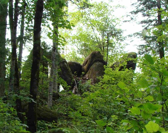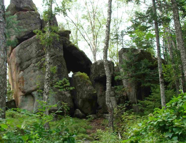 位于距市區(qū)7公里處。在一片密林中,有一簇平地拔地而起,以一塊塊花崗巖巨石砌成的石峰,高大雄偉,其形似柱,稱謂石林。石林由六座石峰組成,南二北四。北面四座一字梯形排列,一高近丈,二高近二丈,三高平二丈,四高一丈半。二峰端長(zhǎng)有蒼松一株,似示最高。各峰成形惟妙,二三座石峰間相距極狹,僅尺許,縫如刀切,稱“一線天”。在第四座石峰南5米處,還有兩座石峰,相距不足1米,微低。遠(yuǎn)望,形如雄師臥地,前身支起而后身匍匐,似忠誠(chéng)的護(hù)林衛(wèi)士。第二叢樹林,在第一叢以東偏南,相距約百米。由三座石峰構(gòu)成,北二南一。北西兩座甚是匹配,高九仞余,其中一座有三個(gè)峰端,有護(hù)林人“家業(yè)興旺”之寓。沿三峰石南側(cè)攀緣而上,至高6米處,鉆過(guò)兩塊大石堆成的石門,便到了石峰東側(cè)的平臺(tái),臺(tái)成弧狀,可納十余人。臺(tái)下是陡峭絕壁,其險(xiǎn)令人目眩。臺(tái)之對(duì)面,有一塊呈圓鼓狀、低于平臺(tái)1米之大石,可容四人并坐,版權(quán)所有山東聊城聊之旅國(guó)際旅行社有限公司,轉(zhuǎn)載必究!其底部與三峰石相連,有狹道與平臺(tái)相通。登石眺望,可觀得西南方向約20米處的丈余高之石峰,似一擎天巨柱……石林,仿佛小興安嶺建設(shè)者之雄資,在廣袤密林中,手捧奇花異草,伴著山間小溪流水淙淙,迎候著遠(yuǎn)方的客人。