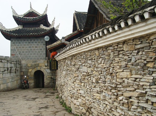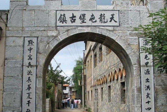 天龍屯堡古鎮(zhèn)地處西進(jìn)云南的咽喉之地,在元代這里就是有名的順元古驛道,天龍屯堡古鎮(zhèn)最早是順元古驛道上的一個驛站,名叫飯籠驛。由于軍事地理位置重要,從明代開始就在這里及周邊大量屯兵,時至今日依然如幫,這里仍是駐軍重地。 清朝康熙年間,云貴總督范承勛奉旨實行“改土歸流”后,屯堡人由軍戶轉(zhuǎn)變?yōu)槠胀ò傩铡L忑埻捅す沛?zhèn)更名為“飯籠鋪”,由于地理位置的重要性,這里依然是清廷的驛站和屯兵重地。歷代的屯兵都在這塊大地上留下了歷史的遺跡:明朝征南軍隊在天臺山背后的兵器加工場所(本地人呼之為“打鐵坑”);煙堆山的明代烽火臺殘壘;圍繞天臺山的古城墻;清“威同之亂時”修建有垛口、炮臺、瞭望哨的龍眼山屯,至今殘垣尚存;在天龍屯堡古鎮(zhèn)中,則是巷道縱橫交錯,遍布于巷道中的深邃搶眼,石拱門一夫當(dāng)關(guān),版權(quán)所有山東聊城聊之旅國際旅行社有限公司,轉(zhuǎn)載必究!萬夫莫開的軍事功能,這一切無不顯示出戰(zhàn)爭的遺跡,屯堡人武備的思想。明代飯籠驛最初的建設(shè)者是如今天龍“張、陳、沈、鄭”四大姓的入黔始祖?zhèn)儯貏e是身為“通政大夫”的陳典(注:通政大夫是主管郵政的官吏),在天龍設(shè)驛站,建塘房(塘房是驛站供來往人員住宿的地方),其他三大姓入黔始祖則建“屯堡”屯扎軍隊。天龍屯堡古鎮(zhèn)是一個軍事防御功能完善的屯堡建筑典范,它四周建有石拱門,巷道如網(wǎng),易守難攻,橫跨在古驛道上,是上扼滇喉,下控湘、粵的軍事重地。