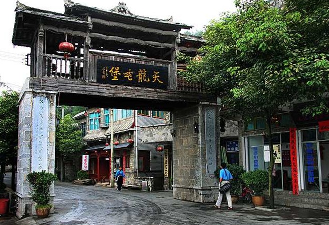 天龍屯堡古鎮(zhèn)位于貴州省西部平壩縣,喀斯特地貌大山深處,有天臺山、龍眼山兩山脈,距貴陽市72公里。這里地處西進(jìn)云南的咽喉之地,在元代就是歷史上有名的順元古驛道上的重要驛站,名“飯籠驛”。明初時,朱元璋調(diào)北鎮(zhèn)南,在這里大量屯兵,兵來自江浙漢族,本世紀(jì)初被當(dāng)?shù)厝迨扛拿麨?ldquo;天龍屯堡”。