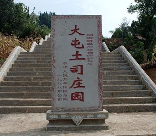 始建于清道光年間(公元1821一1850年),占地5000余平方米,建筑面積1200平方米,坐東向西,依山按中軸對稱三路構筑布局,逐級升高,縱深遞進,呈長方形。相傳是彝族土司余象儀所建,后經余達父擴建始成今狀。它依山勢而建,面臨緩坡低平的臺地。莊園整體布局為中軸大體對稱的大規模三路構筑,各路皆有三重堂宇。左路建筑有東花園、糧倉、繡樓等。東花園也稱“亦園”,用于接待客人。園內有花圃客房等,其建筑十分精美。花圃錯落有致,客房裝修華麗,院壩青石鋪就,院墻彩繪粉飾,古色古香,十分幽雅。中路建筑有大堂、二堂和正堂,各路堂宇之間均有石壩或內墻間隔。高大的磚筑院墻,墻檐下砌筑斗拱,顯得古樸厚重。墻外四周分別筑有碉堡6座,各有其形,各有其用。猶可想見,當年的土司莊園守備森嚴,肅穆莊重。院內進深80余米,橫寬60余米,整個占地面積6000余平方米,建筑布局層層深進、重重冶高,氣勢宏偉壯觀。其石作、木作以及家具雕刻的各類圖紋具有鮮明的彝族文化藝術特征,是研究民族、民俗學的珍貴實物資料。傳說當年參加修筑莊園的近300名工匠歷時3年之久方才大功告成。解放后莊園先后為大屯鄉政府、龍場中學等單位使用。1984年由國務院公布為全國重點文物保護單位。1985年大堂不慎失火燒毀,1994年國家文物局撥款60萬元進行維修,版權所有山東聊城聊之旅國際旅行社有限公司,轉載必究!第一期工程恢復了大堂、西花園等建筑。有機會來到大屯土司莊園的人們,無不為這古樸典雅、莊重宏偉的建筑贊嘆,無不為這瑰麗多姿、技藝精湛的藝術所陶醉。她恰如一部凝固的音樂作品,使人如癡如醉,大有“余音繞梁”之感。層層院落,一亭一院一個景,千姿百態各具特色。大廳古樸莊重,花園千嬌百媚,水榭玲瓏秀美,樓臺亭亭玉立。既有古代殿宇的風格,又不乏彝家建筑的氣派,真可謂是“十步一個景,一景一重天”。漫游在花園小徑,流連于亭臺樓閣,仿佛置身仙山瓊閣。使人倍感新奇,樂而忘返。