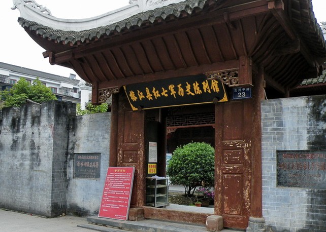 古州紅七軍軍部舊址位于貴州省古州中路西側(cè),原為清代鎮(zhèn)臺衙門,已被評為省級文物保護單位。1930年4月,紅七軍為擺脫國民黨桂軍對右江革命根據(jù)地的圍困,開展游擊戰(zhàn)爭,于30日擊潰黔軍第二師副師長史遠勛部,攻占榕江縣城(古州),紅七軍軍部駐清鎮(zhèn)臺衙門內(nèi),張云逸軍長和李明瑞總指揮在這里主持召開軍事會議,接見各界人士,宣傳黨和紅軍的方針、政策。