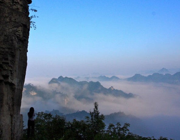 黑沖奇山、云海風(fēng)光瀏覽區(qū)距離縣城24公里,以低山巖容地貌特有的塔狀群峰、裂谷、窄巷和變幻莫測的云景為特色,有轎頂山、黑沖灣、羅漢沖、螞蝗沖四個(gè)游覽區(qū),主要有滴水巖、大絡(luò)迦、小絡(luò)迦、沖天巖等到41個(gè)自然景點(diǎn)和中國工農(nóng)紅軍第六軍團(tuán)戰(zhàn)斗遺址。