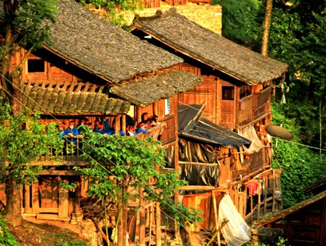 榕江縣侗家村寨大多坐落在古樹(shù)參天,風(fēng)光秀麗,竹林掩映,依山傍水的地方。房屋多為二層或三層不等的木質(zhì)結(jié)構(gòu)吊腳樓,吊腳樓一般依山勢(shì)開(kāi)辟成兩層地基,下層屋基柱腳須用筒柱支撐,有的因偏廈建在地基之外的村巷上或魚塘上而無(wú)支柱造成木樓空懸,吊腳樓因此而得名。七十二寨的房子,每幢樓一般分兩間或三間,也有五間或七間的。除了正屋外,兩側(cè)還設(shè)有寬約丈許,與正屋進(jìn)深等長(zhǎng)的偏廈,上樓的樓梯多架于正屋右側(cè)的偏廈上,二樓前邊是一道由東直通往西的長(zhǎng)長(zhǎng)走廊,廊沿外及整個(gè)房子四周先裝木板后于裝板外鑲嵌雕花格子,這就是我們通常所說(shuō)的雕房。走廊里外分別擺放有幾根寬約尺許,長(zhǎng)達(dá)丈余的杉或松木板凳供客人休息用。七十二寨侗族的火堂一般設(shè)在堂屋里間或兩側(cè)房間內(nèi),火堂分“平燒火堂”和“高燒火堂”兩種。樓下主要用來(lái)關(guān)養(yǎng)牲畜,樓上住人,存放糧食,天樓堆放生活、農(nóng)用雜物等。平燒火堂的表層齊樓板表面,裝滿黃泥巴的撻斗形狀的火堂斗高約一尺,長(zhǎng)寬約1米見(jiàn)方,懸于樓板下邊;高燒火堂的泥斗置于樓板之上,火堂表面高于樓板尺許,左右及內(nèi)側(cè)再鋪一層樓板,形成上下兩層,就表上層連火堂形成長(zhǎng)約一丈,寬約六尺的長(zhǎng)方形樓臺(tái),臺(tái)下的樓板僅余常約一丈,版權(quán)所有山東聊城聊之旅國(guó)際旅行社有限公司,轉(zhuǎn)載必究!寬4尺的狹長(zhǎng)形,與火堂表面形成兩層,這就是獨(dú)具特色的七十二寨侗族“火鋪臺(tái)”。“火鋪臺(tái)”主要用于炊事和烤火,其下面一般是用來(lái)存放紅苕、洋芋等物。這就是七十二寨侗家人房屋建筑的特點(diǎn)。