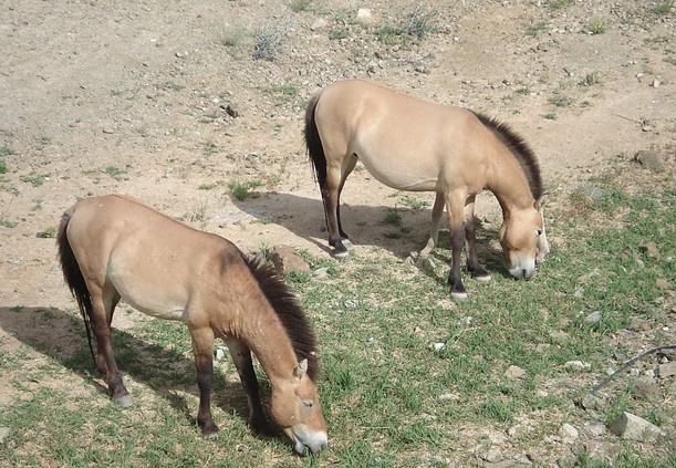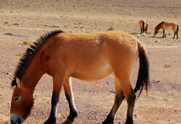 吉木薩爾、奇臺(tái)以北的戈壁荒漠,本是蒙古系野馬的故鄉(xiāng)。1876年,沙俄探險(xiǎn)家普爾熱瓦斯基“首先發(fā)現(xiàn)”了準(zhǔn)噶爾野馬群,大肆捕殺制成標(biāo)本,又將準(zhǔn)噶爾野馬的信息帶到歐洲。于是歐洲人紛至沓來,獵殺之余,將大量野馬駒帶回國(guó)內(nèi)放養(yǎng)。致使這一帶野馬瀕于絕跡。經(jīng)國(guó)內(nèi)外動(dòng)物學(xué)家一再呼吁,近年才從英、德等國(guó)引回17匹當(dāng)年被劫走的 “普氏野馬”的第八、九代后裔,在吉木薩爾縣西北30余公里興建的60余畝圈場(chǎng)中放養(yǎng)。