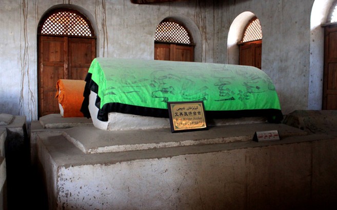 位于新疆哈密市西郊的蓋斯墓又稱“圣人墓”、“綠拱背”。相傳,唐貞觀年間,應(yīng)唐太宗李世民邀請,伊斯蘭教先知穆罕默德派弟子蓋斯、吾外斯,萬嘎斯三人來中國傳教。萬嘎斯病逝廣州,蓋斯和吾外斯到達(dá)長安,受到唐太宗的歡迎。回國途中,吾外斯病逝于河西之回回堡,蓋斯則于唐貞觀九年(公元635年)歿于星星峽,被草草掩埋。后來,哈密回王派人在星星峽為其修建一座拱背。