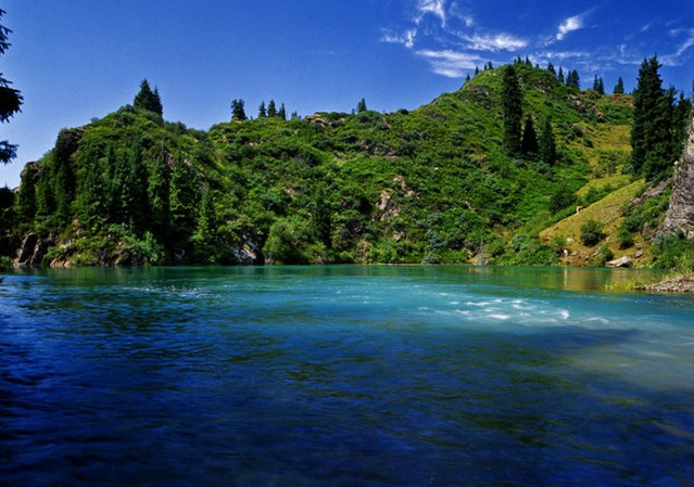 天山風景名勝區(qū),位于東天山北坡,東起寒氣溝,西至松樹塘,南自天山廟,北接鳴沙山,總面積120平方公里,距哈密市約70公里,有省道(即絲路北新道)通往,交通通訊方便,既有巍峨的高山冰川、浩瀚的林海,也有一望無際充滿生機的大草原,還有草木不生光禿禿的鳴沙山(居全國四大鳴沙山響聲之首。天山風景名勝區(qū)主要景點有:白石頭度假村、天山之夏度假村、草原之夜度假村、松海度假村、華龍度假村、電力度假村、大自然度假村、鳴沙山、松樹塘滑雪場等。這里“一日游四季,十里不同天”。