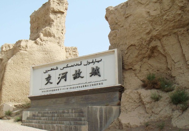 交河故城--是世界上最大最古老、保存最完好的生土建筑城市,也是我國保存兩千多年最完整的都市遺跡,唐西域最高軍政機構(gòu)安西都護府最早就設(shè)在交河故城。1961年被列為國家重點文物保護單位。是公元前2世紀至5世紀由車師人開創(chuàng)和建造的,在南北朝和唐朝達到鼎盛,9至14世紀由于連年戰(zhàn)火,交河城逐漸衰落。元末察合臺時期,吐魯番一帶連年戰(zhàn)火。交河城毀損嚴重,終于被棄。