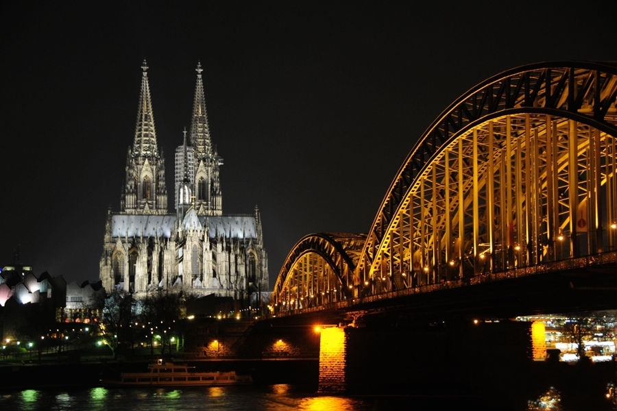 這座高157.38米,花費16萬噸石頭,歷時632年才建成的世界上最偉大的哥特式建筑,足以讓任何人對科隆這座城市肅然起敬,為科隆市民的頑強和永不停息的奮斗精神所折服。腳下踩著德意志大橋堅實而樸素的鋼梁,橋下是萊茵河靜靜的流淌,遠望大教堂直入云端的尖頂,我感悟到這就是德意志精神所在——堅強、追求、深邃。迎面吹來涼爽的風,我慢慢閉上眼睛,用心去感受此刻異國他鄉靜謐與神圣。腦海卻浮現出穿制服的黨衛軍的來回走動、集中營里鐵絲網后猶太兒童恐懼的眼神……而后隆隆的炮聲從耳邊響起,科隆籠罩在火光中,萊茵河上巨響后升起的水柱直沖大橋的橋身…….日耳曼,這是怎樣一個民族啊?