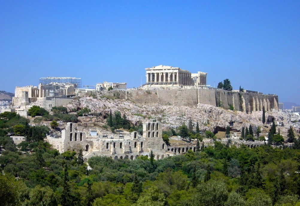 雅典,希臘語為“阿克羅波利斯”,原意為“高處的城市”或“高丘上的城邦”,距今已有近2600年的歷史。雅典衛城遺址位于今雅典城西南,建造在海拔150米(此數據據中文版美國國家地理雜志2004年8月號,另一資料為156米)的石灰巖山岡上,是祭祀雅典守護神雅典娜的神圣地,建筑群建設的總負責人是雕刻家菲迪亞斯。衛城,原意是奴隸主統治者的圣地,古代在此建有神廟,同時又是城市防衛要塞。