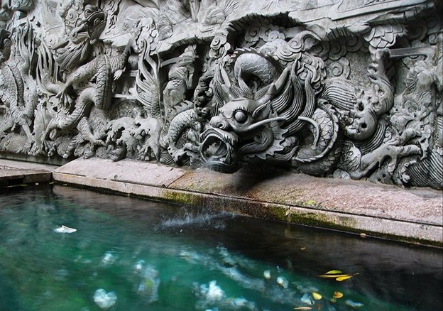 鎮水獨角獸為鐵鑄,兀立在寺大門左側內。銅鈴般的眼睛,警惕著奔流而去的江水,仿佛時刻注視著江水的漲落,以施自己的本領——鎮水。這尊鎮水獨角獸高120厘米,長150厘米,重250千克。“飛仙石”,在寺吟詩亭邊,是一塊筆挺的峭石。粗看像天然屏風,細觀若仙人佇立。版權所有聊城聊之旅國際旅行社有限公司,轉載必究!“飛仙石”也稱“飛來石”。“佛前三炷香”在毗廬大佛前。是三株憑空直上的棕樹,高約20米,傳為唐代秦古人建宇時所栽,故人稱“唐棕”,號為“佛前三位香”。今“唐棕”僅存兩株。“唐棕”前有一圓池,“藥水”流人,池水清碧,金魚嬉戲。