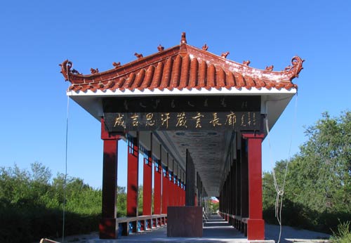原是給守護此廟的喇嘛所建,后來被改建成了展覽廳。展覽廳內(nèi)以詳盡的圖文資料記載了成吉思汗文韜武略、一統(tǒng)天下的蓋世雄才、歷史功績以及成吉思汗廟滄桑巨變的歷程,同時還珍藏著黨和國家領(lǐng)導人以及外賓來成吉思汗廟參觀所留的照片和珍貴題字。