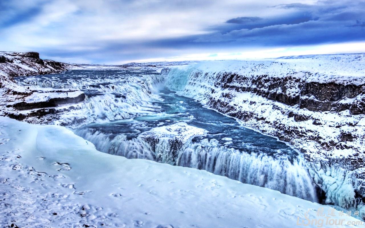 黃金瀑布在哥吉爾噴泉北面十公里處,是冰島人最喜愛的瀑布,也是歐洲著名的瀑布之一,傾瀉而下的瀑布濺出的水珠彌漫在天空,在陽光照射下形成道道彩虹,仿佛整個瀑布是用金子鍛造成的,景象瑰麗無比,令游客流連忘返。 黃金瀑布(Gullfoss)位于冰島首都雷克雅未克以東北125公里外,寬2500米,高70米,為冰島最大的斷層峽谷瀑布, 塔河在這里形成上、下兩道瀑布,下方河道變窄成激流。1975年農(nóng)莊主人將它送給冰島政府作為自然保留區(qū)。現(xiàn)在這里方圓七百公里內(nèi),有鬼斧工的國會斷層、碧草如茵藍天白云倒影的國會湖、堙霧繚繞直沖云霄的間歇噴泉區(qū)等,是冰島風景最迷人的精華區(qū)。