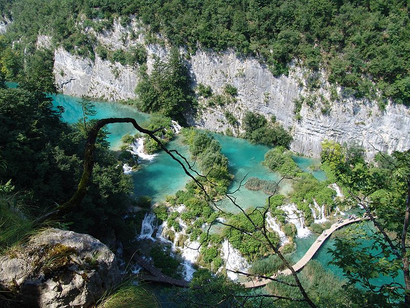 克羅地亞的國(guó)家公園。普里特維采天然湖群,大小共有16個(gè),故又稱(chēng)十六湖,是一處擁有多種珍禽異獸和山水風(fēng)光優(yōu)美的風(fēng)景區(qū)。1949年建立國(guó)家公園,總占地面積19462公頃。其中森林又占70%以上,即15715公頃。公園地形按高低可分兩組,上一組坐落在白云石亞地層的山上,四周均環(huán)繞著茂密的森林。下一組處于兩條山脈間的峽谷中,其內(nèi)16個(gè)互相連接的山地湖泊,總長(zhǎng)10千米,面積為217公頃。公園海拔502~636米 。各湖高差懸殊,從第一湖至第十六湖高差達(dá)135米,諸湖之間形成瀑布群,其中最大瀑布落差達(dá)76米,并呈梯狀一節(jié)節(jié)飛流而下。湖泊兩岸斷壁懸垂,湖與湖之間又有蜿蜒的木橋相連,既便觀賞,又提供了游覽捷徑。