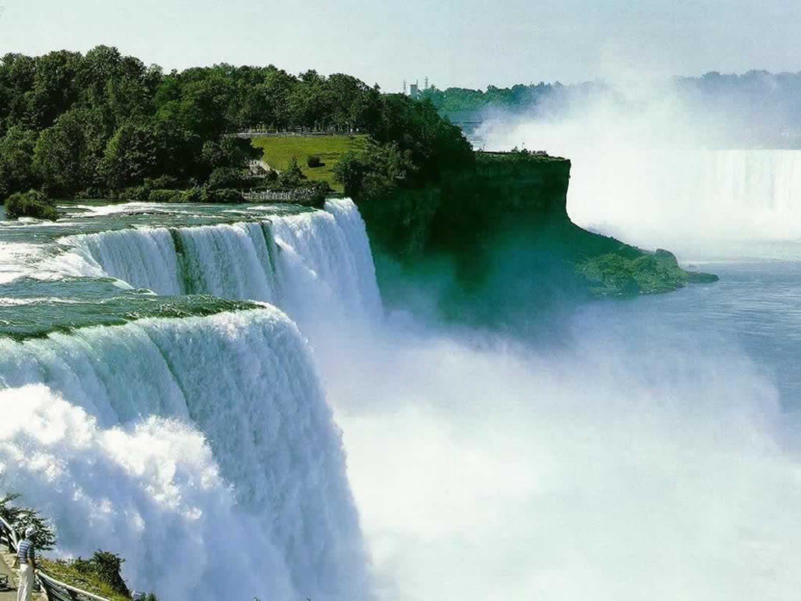 美國瀑布水線長335米、落差54米,與窄窄的新娘面紗瀑布以巖壁上的一塊凸起相隔。這塊凸出的巖石叫“月亮島”(Luna Island),據說從前,在滿月之夜,水霧中會出現月光彩虹,因而得名。如今如此浪漫的景色沒有了,夜間從加拿大一側照射過來的強光燈,制造了另一種人工的旖旎。月亮島也有巖石松落的問題,也曾幾次加固,否則新娘面紗與美國瀑布早就合二為一了。版權所有山東聊城聊之旅國際旅行社有限公司,轉載必究!島上還有一個豎井,可以讓游客下到瀑布底下仰望。