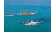 嶺下海灘長達8km,海中距岸l00m處水深才1.5m,距岸200m水深2m。沙白、水清、浪小,是一個理想的天然游泳海灘。嶺前奇山眾多,有周恩來、葉挺同志當年搶渡香港下海處的龍石,汕尾市境內最大的摩嶺刻“鎮海石”,明欽差大臣成大猷、鄭岳山刻“鎮海石”,“揚威止水”于鎮海石上。該處以“神、海、沙、石”兼備而聞名,中國書法家協會主席啟功先生題“粵東旅游黃金海岸”于石上。