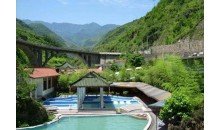 位于康定縣城北4公里許h道橋。泉水源于周公山麓。明清時已具雛型,為往來行人之天然浴池,但設備簡陋,僅有木板遮蓋以蔽風雨。民國初,興修瓦屋,創旅店茶館,題名“與點樓”。1950年后,浴池陸續擴建修葺,植造園林,增設服務設施,增加服務項目。從康定城區開辟專線公路,每逢節假日,游人絡繹不絕。