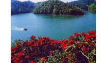 杜鵑湖風景區位于貴州省長順縣境內,屬古夜郎國政治中心,與貴陽、安順成金三角之勢,交通便利,東距貴陽102公里,西達安順85公里,與黃果樹、龍宮、紅楓湖等著名景區共同構成貴州西線旅游環線。杜鵑湖風景區以長達7公里的人工湖為主體,四周群山環抱,湖面煙波浩淼,湖水碧綠如鏡,山頂煙霧繚繞,山下微波拂岸。杜鵑湖的森林覆蓋率近90%,生長著原生態的常綠杜鵑花。