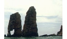在南、北隍城二島之間的東側(cè),有一巨大礁石,赤巖金壁,宛若身披袈裟的老僧,雙手合十、閉目凝神,面西而坐,其東北也有一礁,顏色赭青,狀若香爐,爐上又斜立一壁石巖,恰似半柱殘香,人稱為“香爐礁”,道二礁東西對(duì)應(yīng),遠(yuǎn)遠(yuǎn)望去,酷似一位老僧在虔誠(chéng)地焚火敬香,祈禱海神保佑過(guò)路的船只平安。這羅漢敬香的景致,歷來(lái)是長(zhǎng)島的一大奇觀,旅游艇長(zhǎng)島諸島三日游,安排有觀光羅漢敬香的項(xiàng)目。