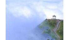 探海石,是位于岱頂?shù)囊粔K突兀伸出的怪石,其上可觀云海玉盤奇景。夏天,雨后初晴,大量水蒸氣蒸發(fā)上升,加之夏季從海上吹來的暖溫空氣被高壓氣流控制在海拔 1500米左右的高度時,如果無風(fēng),在岱頂就會看見白云平鋪萬里,猶如一個巨大的玉盤懸浮在天地之間。遠(yuǎn)處的群山全被云霧吞沒,只有幾座山頭露出云端;近處游人踏云駕霧,仿佛來到了天外。