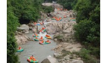 臺山北峰山漂流位于古兜山省級自然保護區(qū)內,省級森林公園原始峽谷之中,漂流河段全程4公里,需時1時20分鐘。自然保護區(qū)內茂密的原始森林和天然峽谷賦予北峰山漂流與眾不同的特色,集瀑布、深潭、奇石、密林、珍稀動植物、沙灘于一身,在全省獨樹一幟,自然景色之美令人為之驚嘆。全程80多米的落差,密林之下,瀑布飛舟,在峽谷中穿石繞壁,凌波逐浪,融逍遙漂與勇士漂于一體。