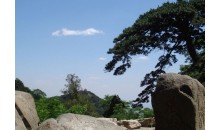 大夫松位于泰山云步橋北側的五松亭旁。登山盤路至此,有石坊赫然而立,額題“五大夫松”。坊西古松既為五大夫松,又稱“秦松”?!扒厮赏π恪睘樘┌舶司爸?。在這里可遙望十八盤、南天門,只見兩山對峙,萬仞中鳥道百折,云蒸霞蔚,迷離耳目衣袂之間;松濤陣陣,傳千谷萬壑不絕。在這里還可以下望云步橋,只見水流潺潺,陡然入澗,瀑水懸流,濺花瀉珠,風響水鳴,萬籟俱寂,風景之秀麗之清幽無言以表。