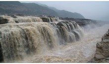 黃河壺口瀑布地質公園以黃河為軸心,地跨山西和陜西兩省。河東有呂梁山,河西為黃龍山。黃河壺口瀑布是黃河河道上第一大瀑布。它飛流直瀉,巨浪滔天,氣吞山河,濤聲震天,兩岸殘崖峭壁,蔚為天下奇觀。瀑布上游黃河水面寬300米,在不到500米長距離內,被壓縮到20-30米的寬度。1000立方米/秒的河水,從20多米高的陡崖上傾注而瀉、造成”千里黃河一壺收”的氣概。