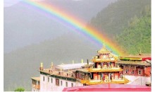 嘎東寺位于日喀則白朗縣年楚河以北16公里嘎東鎮(zhèn)境內(nèi)。嘎東寺歷經(jīng)寧瑪派、噶舉派、薩迦派,到十七世紀(jì)中葉開始盛行格魯派。寺中珍藏有舉世罕見的寶物,即該寺第四任堪布桑布?xì)J布的兩條徑骨和空行母絲薩曲珍的頭顱。在桑布?xì)J布右徑骨上端的骨縫四周天然生成著微小的釋迦牟尼、觀音菩薩、無(wú)量光佛、護(hù)法神、度母五尊佛像;左脛上端天然生成著微小的釋迦牟尼佛像和4個(gè)白色舍利;在度母化身空行母絲薩曲珍的頭顱上天然生成著三個(gè)藏文字母和度母像。原嘎東寺已被毀壞,1985年在原址上重新修建了嘎東寺。