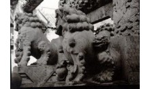 因雕有一百個不同書體的壽字而得名。坊以青色魚子狀石灰巖構成,通高l3米、寬8米,四柱三間三層樓閣式建筑。其獨特之處是:坊座雕有8頭矯健雄獅昂首遠望,8條出水蚊龍繞柱回舞,額枋上飾滿盛開牡丹,與正間上下額枋祥云間翩翩飛舞的5只透雕仙鶴、次間上額枋浮雕的相對翱翔之鸞鳳構成了具有無窮魅力之藝術佳作,寓意福壽萬年、富貴無媲或喜上眉梢。