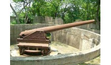 此炮臺控制旱峽陸路及羚山峽水道交通的要沖,形勢險要,這里是歷來兵家必爭之地。炮臺主體建筑設(shè)在紅崗制高點,以主體暗堡(母堡)為中心,在平面為長方形的陣地上按照東南、東北、西南、西北四個方位分設(shè)四座較小的暗堡(子堡),炮臺暗堡結(jié)構(gòu)與當(dāng)?shù)仄渌谂_一樣。