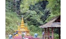 位于勐海縣城東南佛雙公路7公里處的曼壘村后山頂上。母塔高9米,子塔高6米,造型美觀,周圍古木參天,環境優美。傳說佛祖釋迦牟尼曾帶領一名高徒到西雙版納傳經時曾坐在此地休息,后來當地傣族人民為了紀念他,運來磚石建塔。據說此塔已有1000多年歷史。