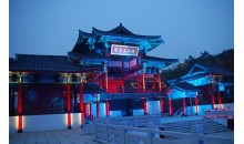 景區內的亭、臺、樓、閣、廊、橋,于山水映襯間相映成趣,構成一座水上世界、夢幻樂園!福通天和樂園的入口為虎鯨形狀,“虎鯨”取其諧音,含義為“福徑”,意為游客踏福而來,攜福而歸,整個景區的行走路線為單向設計,游客不能走回頭路,因為一直伴您左右的是“福”,一直在前方等候的還是“福”,突出了福滿園的設計理念。