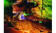 洞天仙境(又名穿天巖),位于廣東清遠(yuǎn)英德市九龍鎮(zhèn)西面2公里,是一個(gè)溪流穿山而過的巖洞,乘船游覽,流程約200米,洞內(nèi)洞廳廣闊,鐘乳石形態(tài)多樣,洞頂有2個(gè)穿孔通天,光線從中透入洞里。洞內(nèi)有一片陸地,生長著茂盛的陰生植物,密密麻麻,枝葉婆婆,呈原始狀態(tài),像這樣的洞內(nèi)小森林確是一個(gè)罕風(fēng)奇觀??粗@里有光、有水、有地、有林,感覺像走入另一個(gè)世界,“別有洞天”可能就是這樣一意境吧。