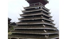 地坪風(fēng)雨樓 這是貴州省最大、造型最美的風(fēng)雨橋。長達(dá)50多米的地坪風(fēng)雨橋始建于清光緒二十年即公元1894年,1959年毀于火災(zāi),1964年重建。整座橋不用一釘一鉚,而運(yùn)用杠桿力學(xué)原理,將大小不一的柱、枋、檁、凳、欄桿等全部用杉木鑿榫穿枋構(gòu)成。橋體為長廊式木結(jié)構(gòu),橋上有一大兩小共三座橋樓。居中的大橋樓是鼓樓式建筑,兩邊的橋樓皆為三層重檐雙斜面屋頂。