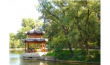 南山積雪亭位于山莊正北、青楓綠嶼南側的山頂上,是一處借景之作,為“康熙三十六景”第十三景。是山莊的制高點之一。 南山積雪亭為方形四角攢尖式敞亭,面積較大,在此可一覽眾峰。“南山積雪”是觀賞山莊初冬雪景為命題的一組苑景。塞北高寒,山莊之南,峰嶺環列,嶺上積雪經久不消。登亭遙望,群山上的積雪“皓潔凝映,晴日朝鮮,瓊瑤失素”。直到初春時節,仍是“不改冰霜積雪冬”的景象。