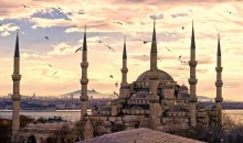 藍(lán)色清真寺,原名蘇丹艾哈邁德清真寺,土耳其著名清真寺之一,17世紀(jì)初由伊斯蘭世界著名古典建筑師錫南的得意門生Mehmet Aga設(shè)計(jì)建造,因清真寺內(nèi)墻壁全部用藍(lán)、白兩色的依茲尼克瓷磚裝飾故名,是伊斯坦布爾最重要的標(biāo)志性建筑之一。