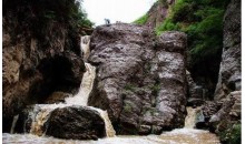 胭脂峽位于涇源縣城東北8千米的黃花鄉(xiāng)羊槽村東側(cè),東臨崆峒山,西接六盤山,南與老龍?zhí)断嗤瑣{谷全長45千米,形成于8億年前的奧陶紀(jì)。“胭脂”一名是由春秋時(shí)代在這里繁衍生息過的少數(shù)民族“焉支氏”、“焉支”部落演化而來的。
