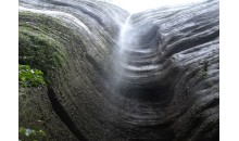 鐘鼓巖位于南雄縣城北27公里處,原城翠屏山,因其中有二石,一在鐘巖叩之如鐘聲,一在鼓巖擊有鼓音,合稱為鐘鼓巖。巖上石壁刻有“萬福洞”三個大字,落款“大唐呂巖”(即呂洞賓)。北宋大文學家蘇軾被貶嶺南,獲赦后北歸路過這里,為八仙洞題“諸仙洞”三字。鐘鼓巖不僅洞內景觀奇特,洞外巖石亦奇形怪狀。并建有六亭:甫梅亭、倚翠亭、迎曦亭、拱北亭、崆峒亭和梅亭。巖下有“洞真觀”。