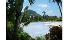 這里有理想的天然海濱浴場,海灘綿延1 2公里,沙質潔白,寬闊平緩;海水清澈,無礁無鯊,安全條件好,海表溫度高,全年適宜海浴時間在280天以上,素有“南方北戴河”美稱。南海之濱的兩顆明珠虎頭山和晏鏡嶺聳立區內,既是度假區的迷人景觀,又是兩座天然的觀景臺,與陽光、白沙、碧浪、林帶交織成一幅如詩似畫、如夢似幻的南國海濱風情畫卷。
