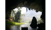陽春玉溪三洞全長3公里,均可坐船瀏覽。第二洞長330米,水深2-5米,水面寬20-30米,河水清澈如玉,水中多生長鯉魚。洞中景物豐富,尤以“三變石”為趣,詩人張永枚曰:“遠似漁翁釣清流, 近如獅子滾繡球,忽變犀牛望明月,一石三景迷輕舟”。第一洞頂的“皇冠”石,酷似皇冠,游人在船上隨即可拍攝一幅頭戴皇冠的照片。